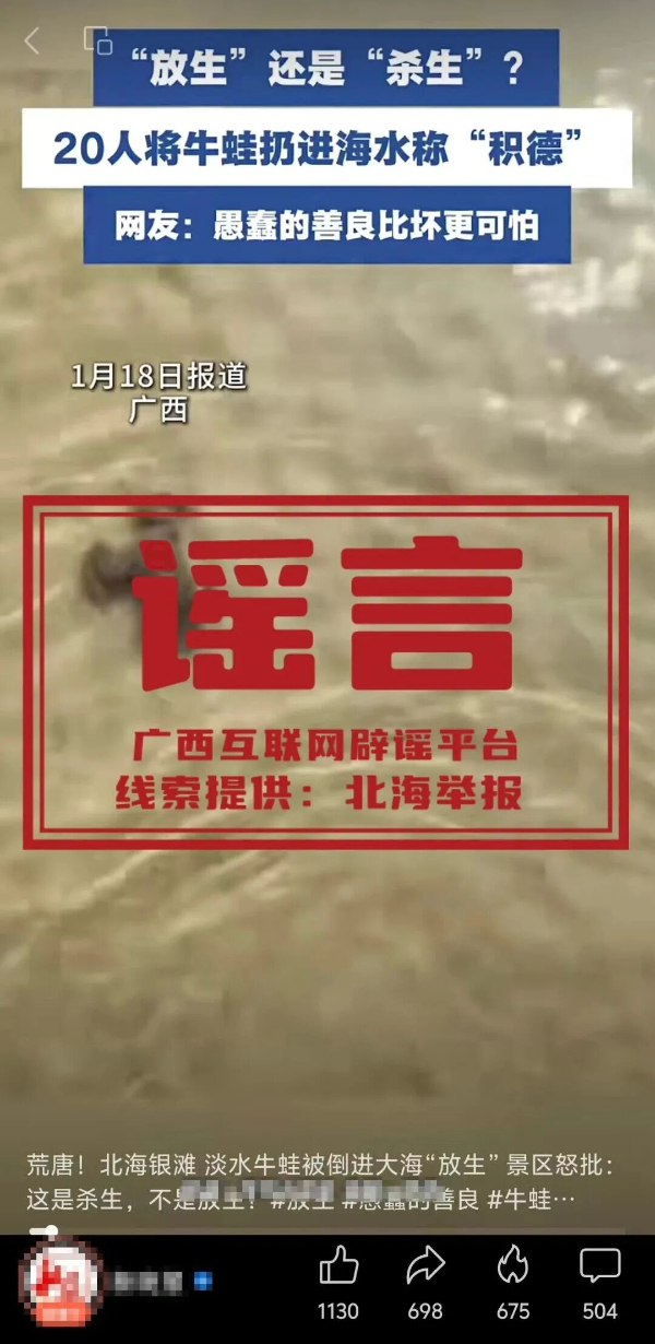 1月中下旬,网络平台流传“近期有人在北海银滩放生淡水龟、牛蛙”的视频及图文,引发公众关注与误解。